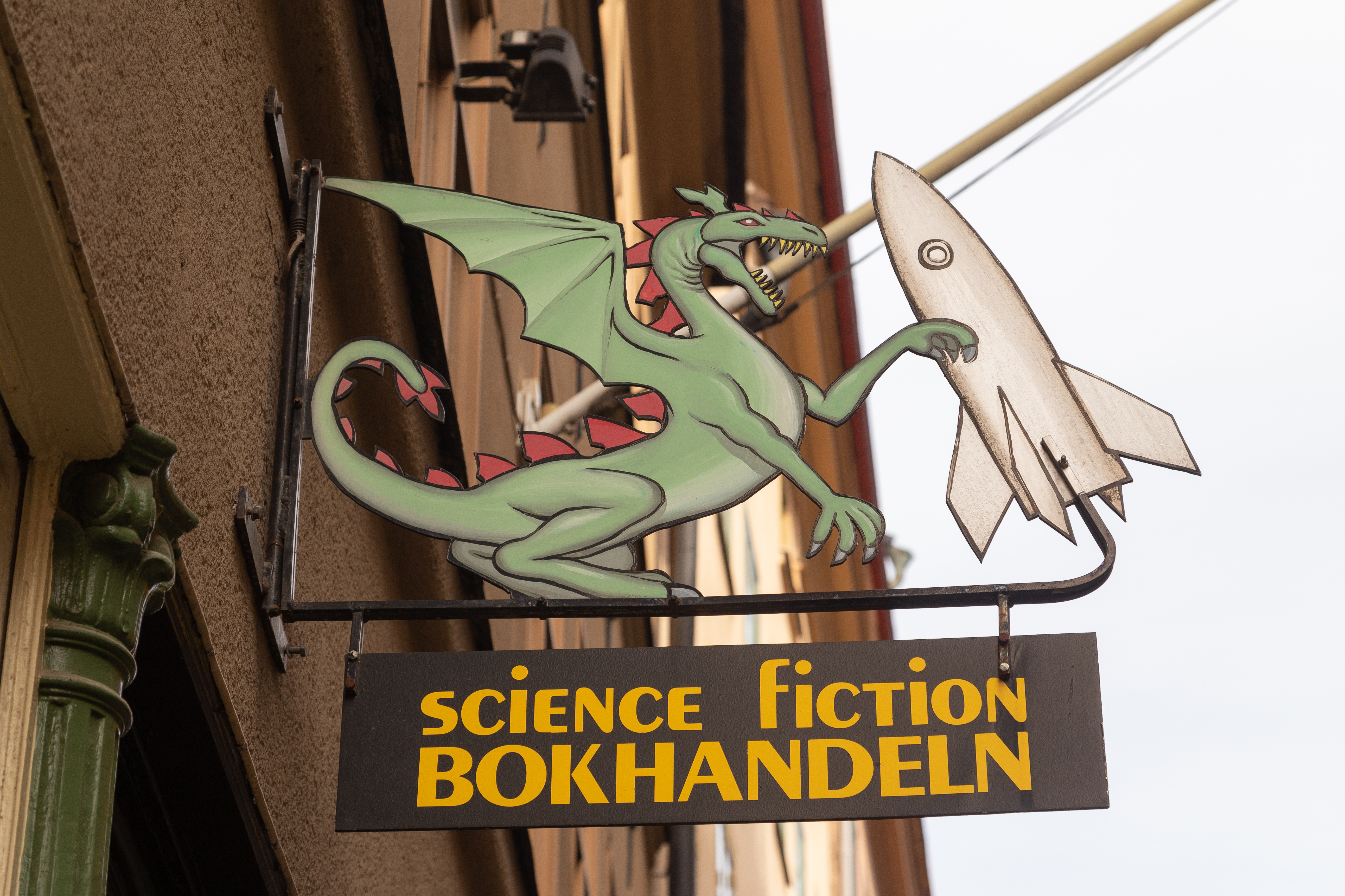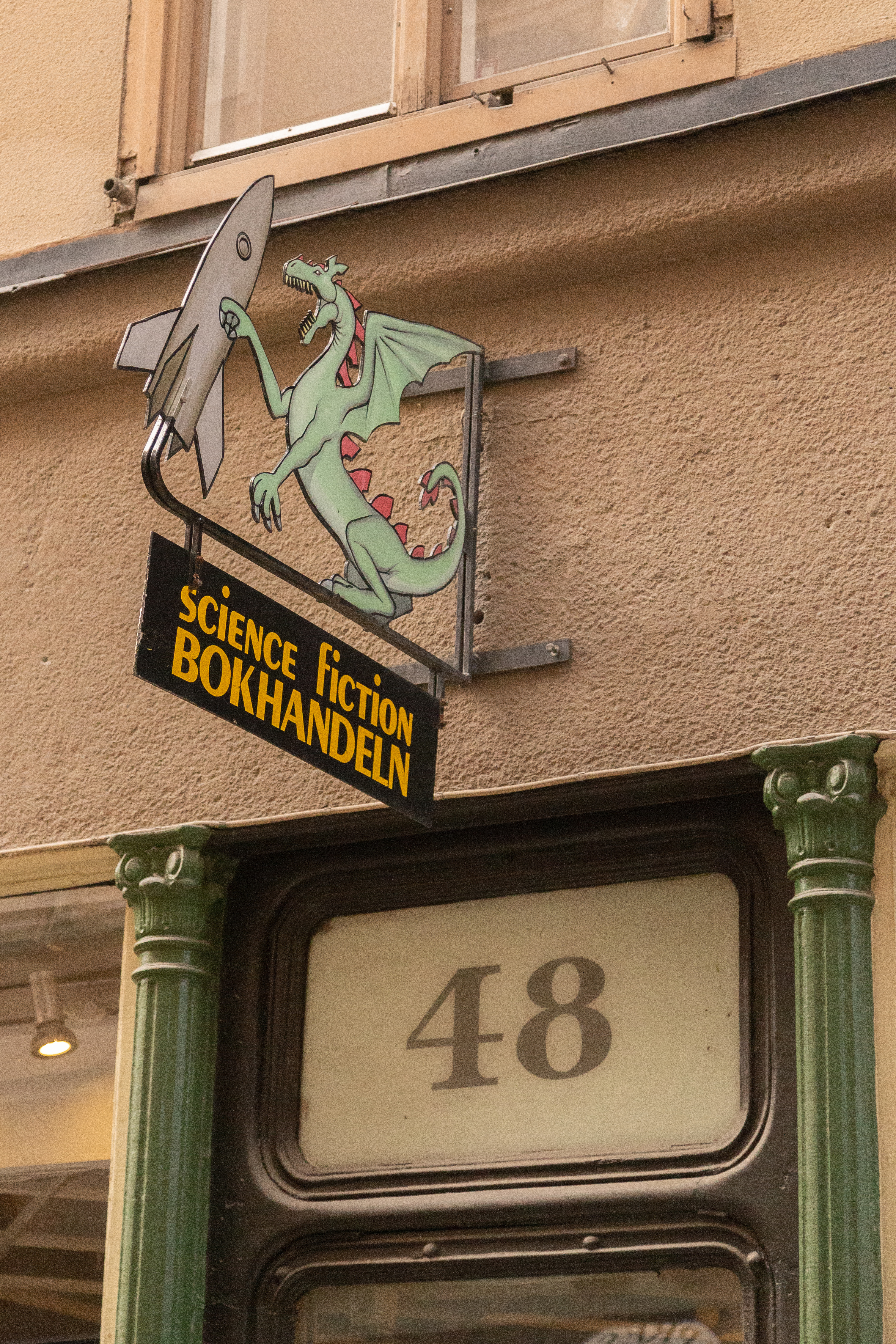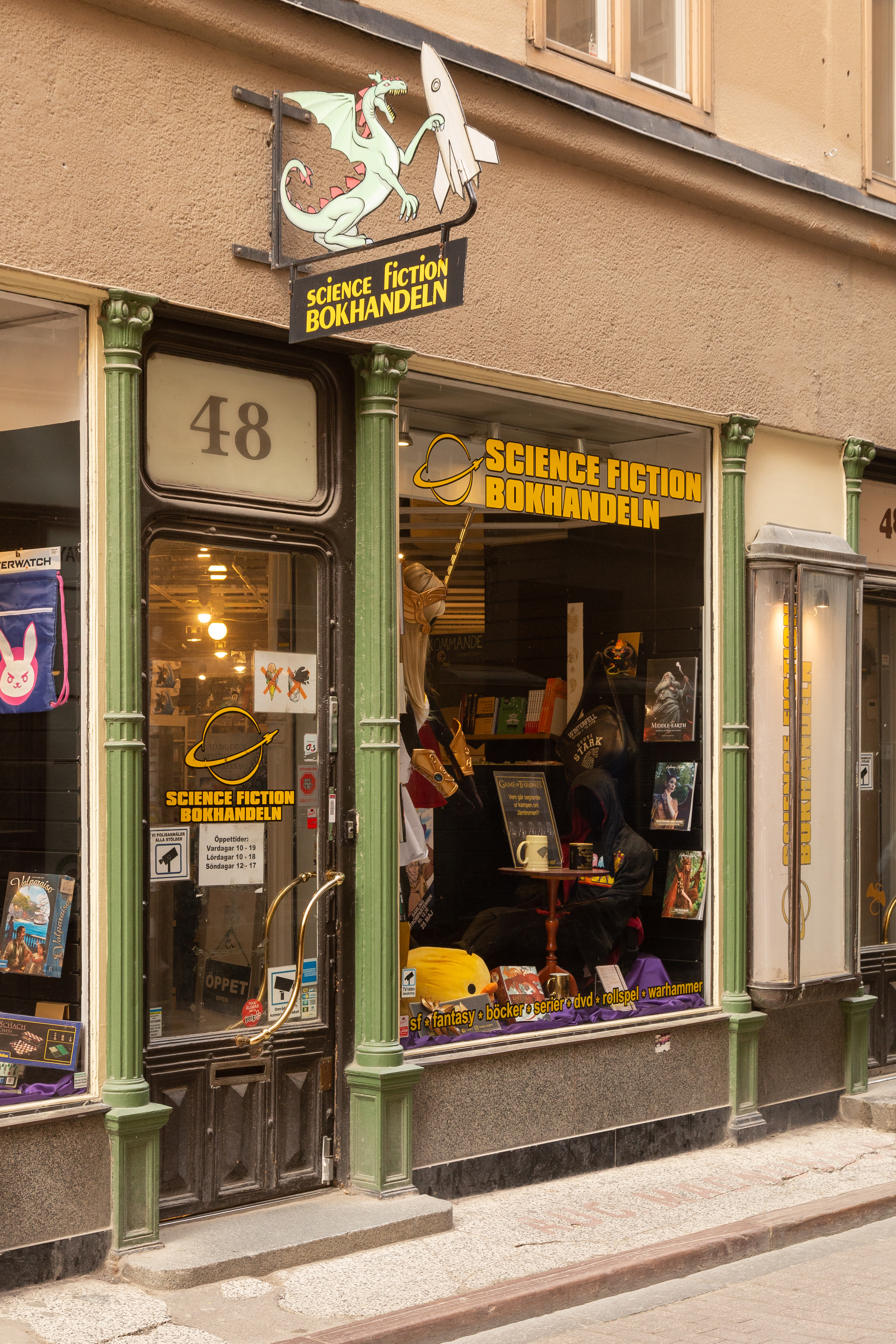 Det här hör vi fortfarande relativt ofta, mer sällan med "Stora Nygatan" utbytt till Atlasgatan eller någon annan av våra tidigare adresser, och får förklara att "jo, det var faktiskt vi, vi flyttade hit för några år sedan" - varje gång vi flyttat har vi förstås gjort vad vi kunnat för att nå ut med det, men några missar vi självklart varje gång. Och även om "SF-Bokhandeln" beskriver vad vi är ganska bra, är det också väl anonymt. Hade vi hetat "Aniara" eller något annat hade folk förstås känt igen oss på en gång. Vi har funderat på att byta namn till och från, men har hittills inte lyckats komma på något namn bra nog för att vara värt ansträngningen.