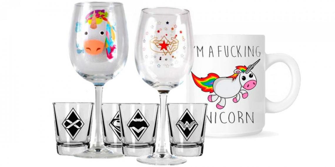 Nu kan vi som både gillar nördigt och vin (som ju i och för sig är en hel nördsfär i sig) glädjas: eleganta vinglas med stjärnmotiv från både Wonder Woman och magiska enhörningsglas. Enhörningar kan även skänka välbehövligt skimmer åt morgonkaffet.