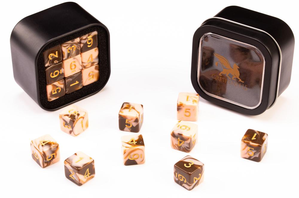18d6 Marble Series: Chocolate & Cream - Numbers: Gold