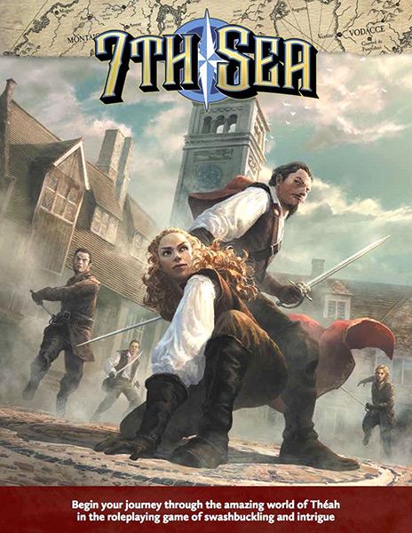 * Save the Queen of Avalon from treacherous blackmail! Thwart a dastardly assassination attempt on the Cardinal of Castille! Raid the villainous fleets of Vodacce Merchant Princes! Free the Prince of the Sarmatian Commonwealth from a mysterious curse! Make decisions that alter the very course of Thean history in 7th Sea, a tabletop roleplaying game of swashbuckling and intrigue, exploration and adventure! In 7th Sea, players take on the roles of heroes thrown into global conspiracies and sinister plots, exploring ancient ruins of a race long vanished and protecting the rightful kings and queens of Theah from murderous villains. It is a world of sharp blades and sharp wits, where a cutting retort can be just as deadly as a sword point!