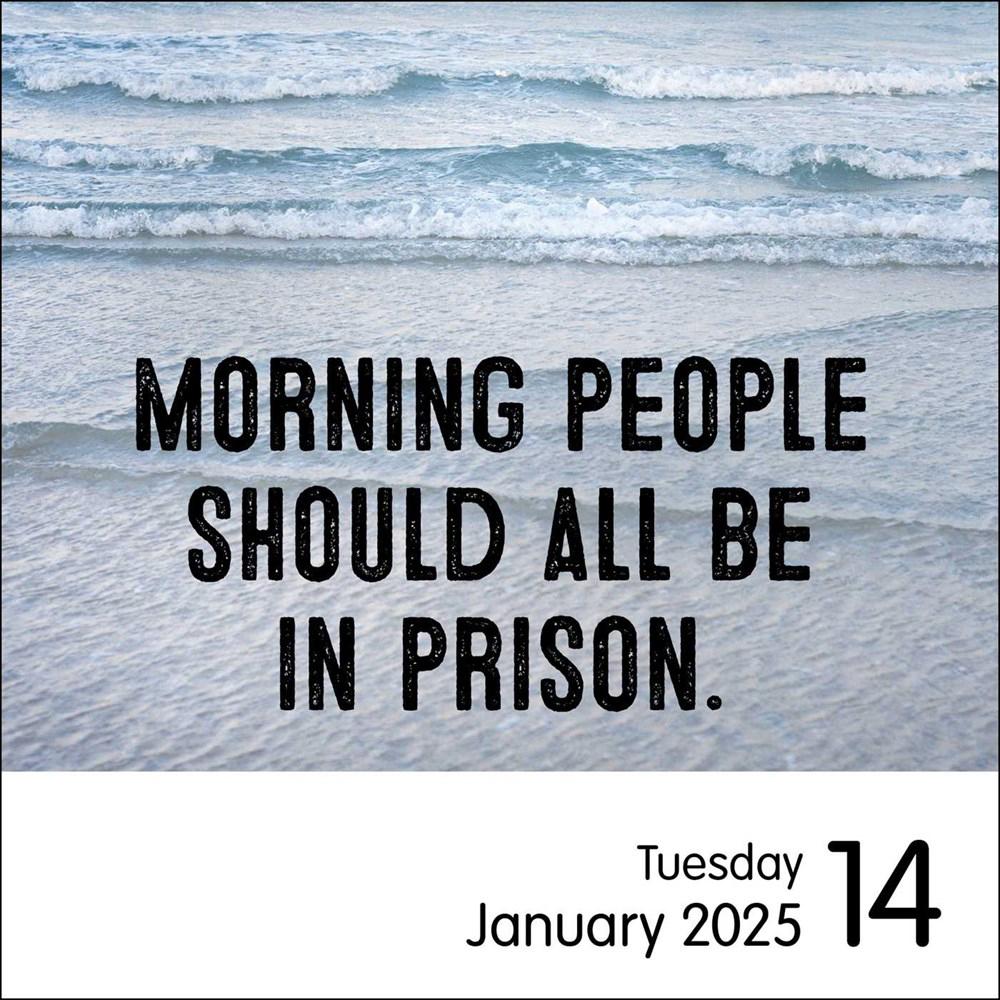 • Each page features a hilariously dark, cynical, and sarcastic anti-affirmation.