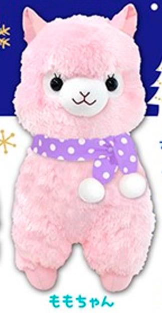 Söt och mjuk alpacka med rosa päls! Vintern är på väg och därför har den förberett sig med en gosig halsduk.
