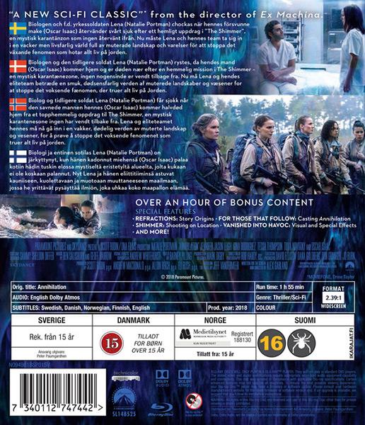 Biologen och före detta yrkessoldaten Lena (Natalie Portman) chockas när hennes försvunne make (Oscar Isaac) återvänder svårt sjuk efter ett hemligt uppdrag i "The Shimmer", en mystisk karantänzon som ingen återvänt ifrån. Nu måste Lena och hennes team ta sig in i en vacker men livsfarlig värld full av muterade landskap och varelser för att stoppa det växande fenomen som hotar allt liv på jorden.