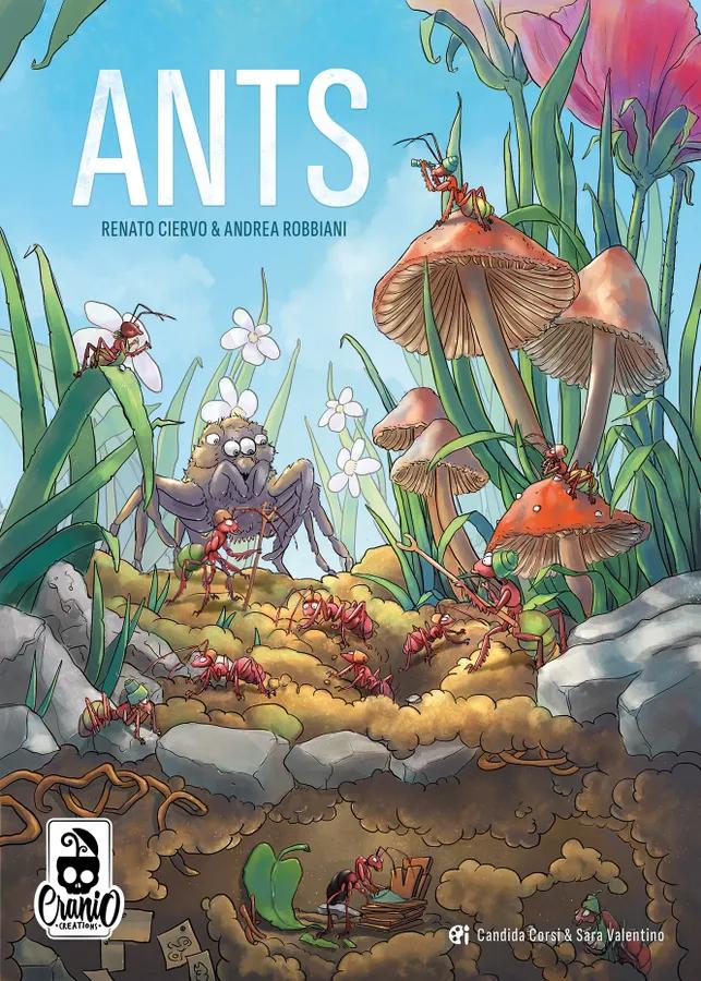 Ants is a deep strategy game that focuses on worker management and territorial expansion. Each player begins with one of multiple unique Queen tiles, which will heavily influence your strategy and interaction with the game's interconnected systems. Throughout the game, you will guide your ant colony through cycles of growth, exploration, and conquest to establish dominance over the garden ecosystem.