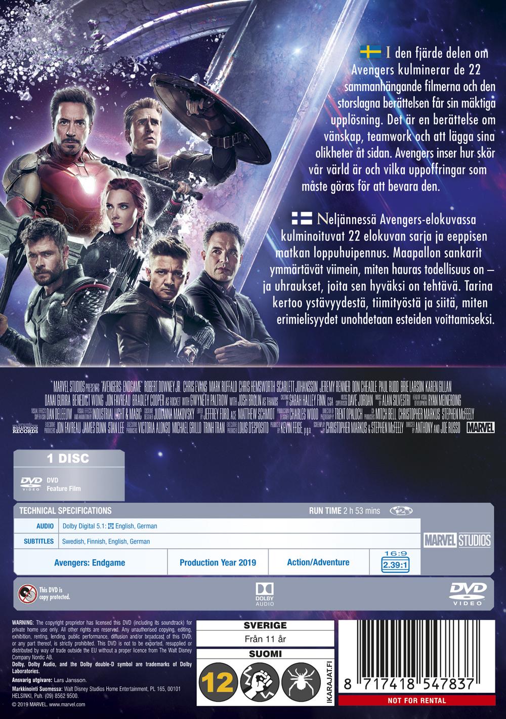 I den fjärde delen om Avengers kulminerar de 22 sammanhängande filmerna och den storslagna berättelsen får sin mäktiga upplösning. Det är en berättelse om vänskap, teamwork och att lägga sina olikheter åt sidan. Avengers inser hur skör vår värld är och vilka uppoffringar som måste göras för att bevara den.