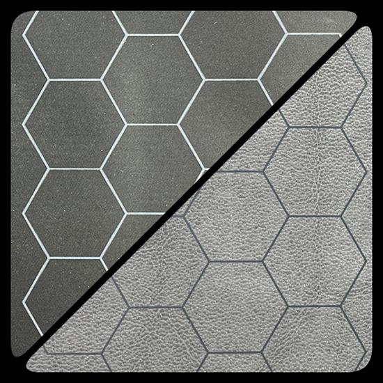 1 inch hexes on both sides, one with black on grey, the other with grey on black. Vinyl.