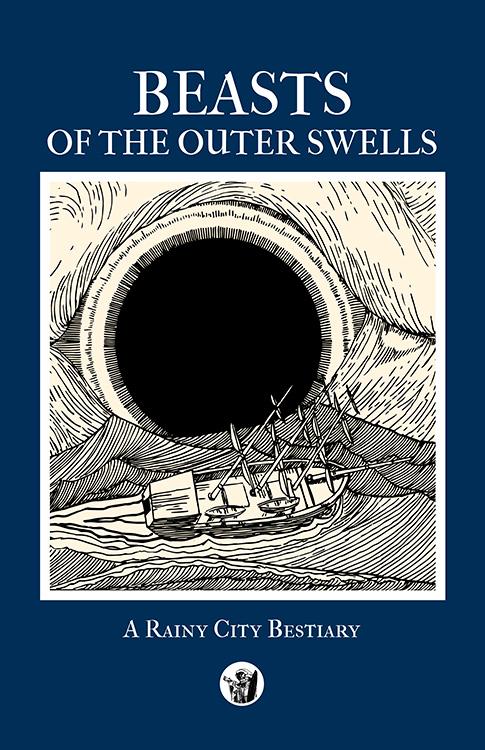 BEASTS OF THE OUTER SWELLS is a system-neutral RPG bestiary offering a collection of unsettling and unnatural tall tales, legends, and galley gossip about several strange, wondrous, and horrific sea monsters found in the rough seas aroundthe Rainy City–a doomed fantasy metropolis at the end of the world where the wizards jealously guard their rotting magical tomes, the gargoyles are always watching, the thieves are on the prowl, and the rains never stop!