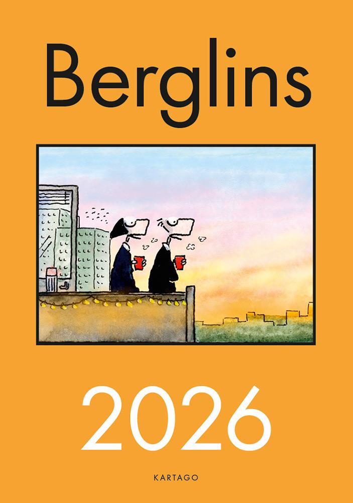 En ny väggkalender för 2026 signerad Jan och Maria Berglin. Träffsäkert och humoristiskt låter paret Berglin sina stornästa figurer kommentera tillvaron och sakernas tillstånd. Innehåller traditionsenligt också bonusmånaden Mörv 30 extra grådagar mellan november och december.