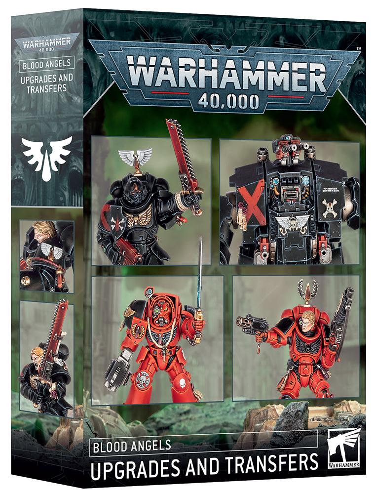 - 1x Blood Angels Transfer Sheet featuring 225 transfers for infantry and vehicles, including Chapter icons, campaign badges, blood drop squad markings, and symbols of rank