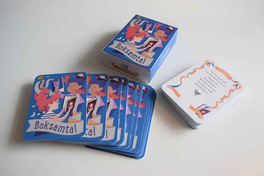 Att samtala om böcker är både roligt och lärorikt. Tillsammans kan vi förstå svåra böcker och bli bättre på att lyssna på varandra. Boksamtalskorten innehåller frågor att samtala kring och ska fungera som ett stöd vid boksamtal. Årskurs 4-9 samt gymnasiet. Kortleken innehåller 52 kort.