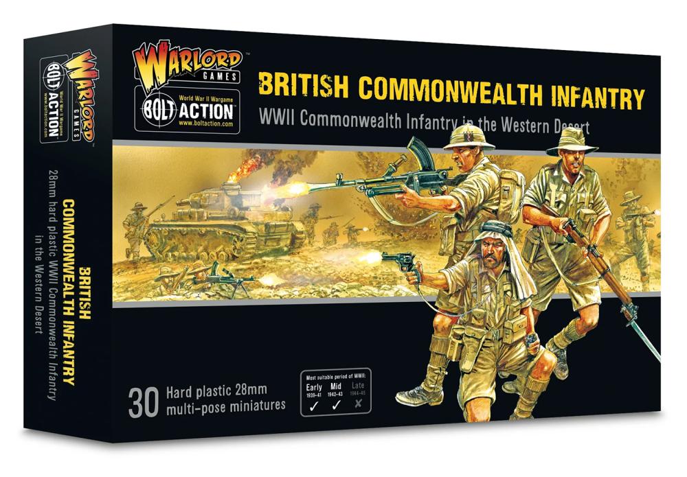 Enough plastic components to make: 30 British Commonwealth miniatures. Includes a host of options to allow for different weapon configurations and command models.