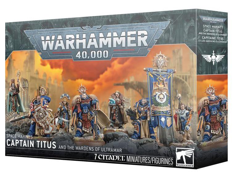 This multipart plastic kit builds 7 miniatures, including Captain Demetrian Titus, his closest advisors, and his battle-brothers for your Space Marine armies in games of Warhammer 40,000. Decked out in the finery of his newly reclaimed position as Captain, he cuts a fine figure. Ancient Gadriel bears a company standard at his side, and Veteran Sergeant Metaurus is equipped as a Bladeguard Veteran.