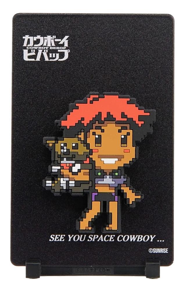 Displaymagnet av Ed & Ein från Cowboy Bebop. Magneten är 11 cm, men låt dig inte luras av att det kallas för en magnet; den kommer nämligen med ett ställ för att enkelt kunna ställas på display i ditt hem. Dessutom kommer den med en magnetisk sticker, så du enkelt kan montera den på andra plana ytor eller liknande.