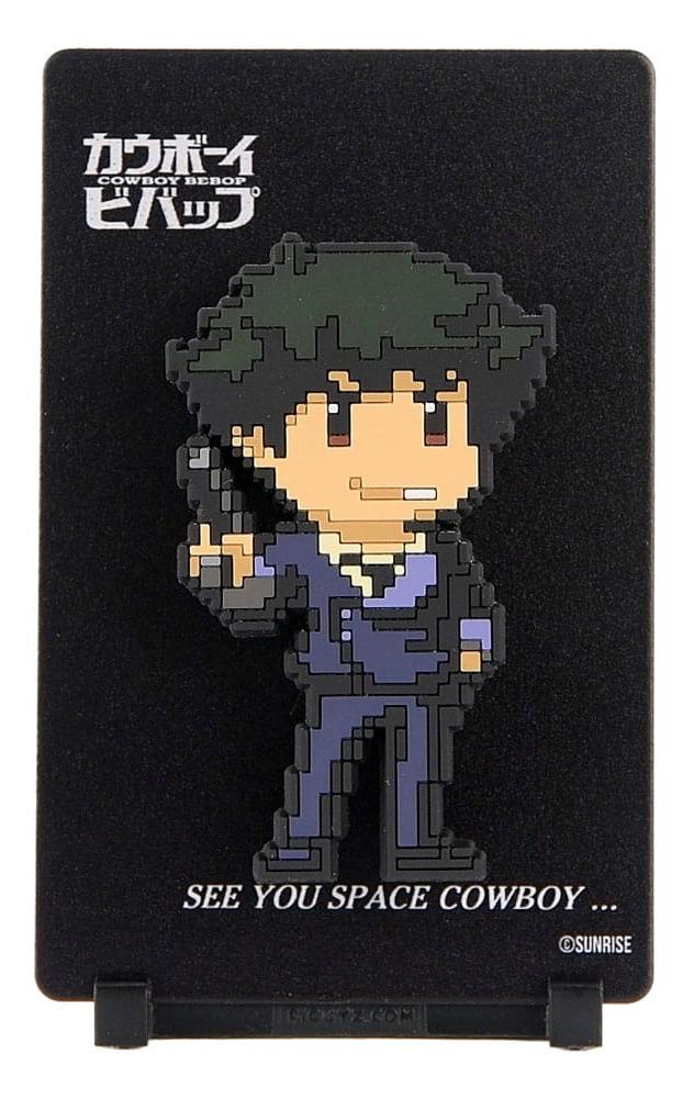 Displaymagnet av Spike Spiegel från Cowboy Bebop. Magneten är 11 cm, men låt dig inte luras av att det kallas för en magnet; den kommer nämligen med ett ställ för att enkelt kunna ställas på display i ditt hem. Dessutom kommer den med en magnetisk sticker, så du enkelt kan montera den på andra plana ytor eller liknande.