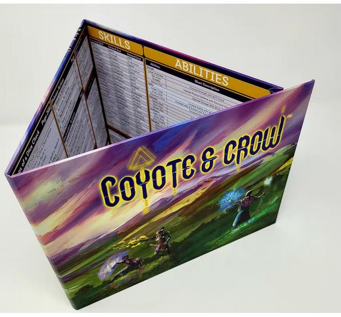 Coyote & Crow RPG - Story Guide Screen gives your GM easy access to the most frequently used rules and information during your adventures. It also offers players a beautiful illustration view by artist Sadekaronhes Esquivel.