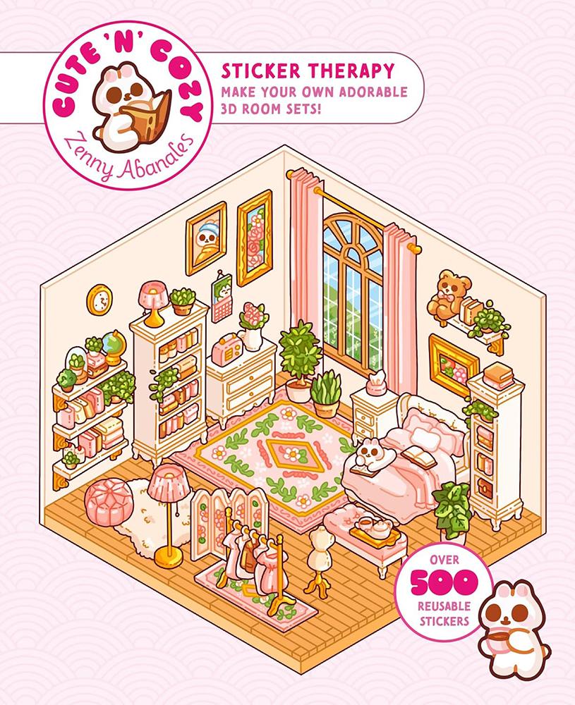 And over 500 unique, reusable, hand-drawn stickers, this book has hours and hours of calming fun. Furnish your bedroom with the most charming bookcases and treasured knick-knacks. Get snuggly in the living room with billowing cushions and gently warming lamps. Or build the bookstore of your dreams (complete with cute feline friend!). Cute ‘n’ Cozy Sticker Therapy is here for you to find your calm and create your own beautiful keepsake.