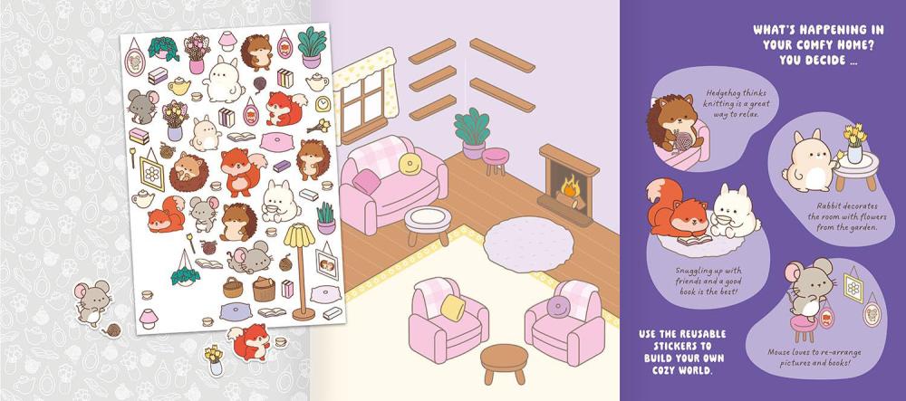 Create a comfy home scene, step by step, with high-quality cute reusable stickers for endless moments of calm.