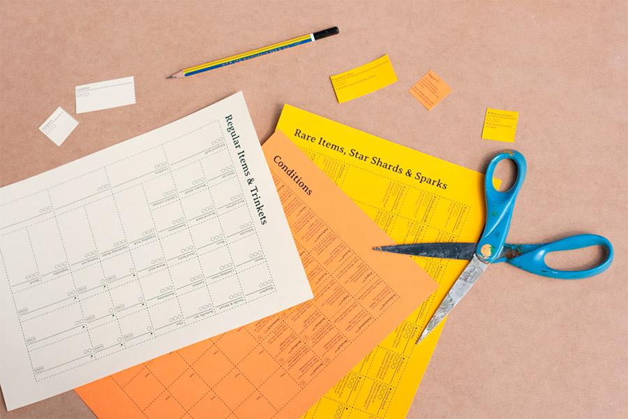 - Item and Condition cards. A set of 3 ready-to-cut sheets with items, star shards, and conditions.