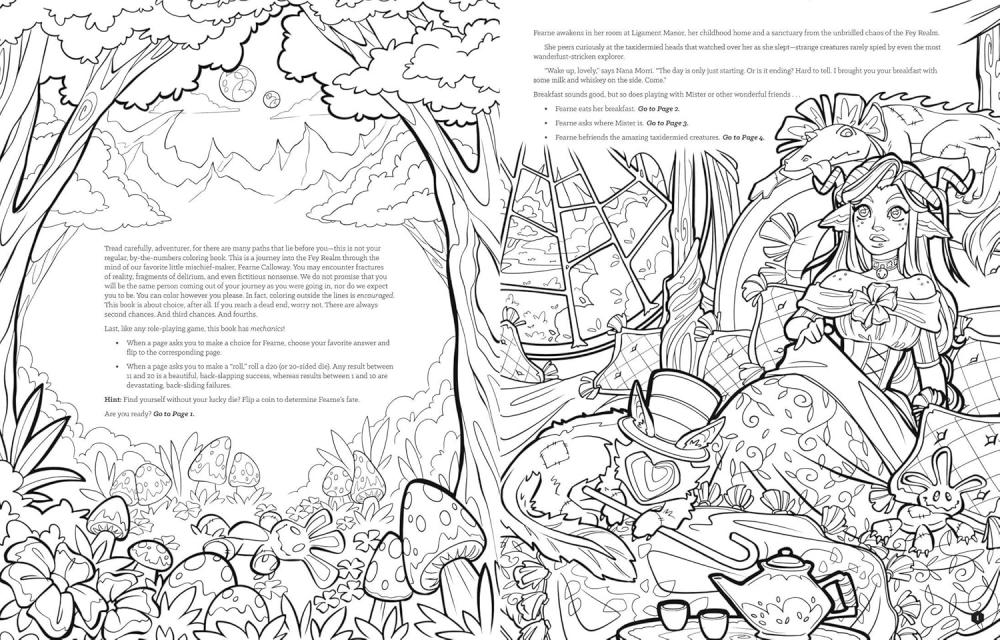 Grab your pencils and prepare for a colorful new quest in the magical world of Critical Role! In this choose-your-own-path story, you’ll follow young Fearne through the mysterious Fey Realm, coloring her and Bells Hells in and out of trouble! This realm is full of strange landscapes, eerie creatures, and surprising friends. Can you trust what looks safe? Are the threats really dangerous? It’s up to you to lead Fearne back to Ligament Manor safely, encountering plenty of crossroads and surprises on the way. There’s no telling where you’ll end up in this colorful, mind-bending realm! This is your Critical Role adventure, your way! So… how do you want to do this? 60+ PAGES TO COLOR: Over sixty gorgeous pages of unique, enthralling Fey Realm visuals to color your way through on the course of your Exandrian adventure. COLOR THE WHOLE PARTY: All your favorite heroes join you on this epic coloring quest, including Fearne Calloway, Laudna, Imogen Temult, Ashton Greymoore, Chetney Pock O'Pea, Fresh Cut Grass, and Orym of the Air Ashari ?and a few of Fearne’s fey friends! ROLL THE DICE: There are plenty of surprises in your adventure! Color your way down different paths, with over a dozen possible endings! PERFECT FOR CRITTERS: Whether you’re a longtime fan, a brand-new critter, or a lover of whimsical fantasy adventures, this coloring adventure offers hours of fun.