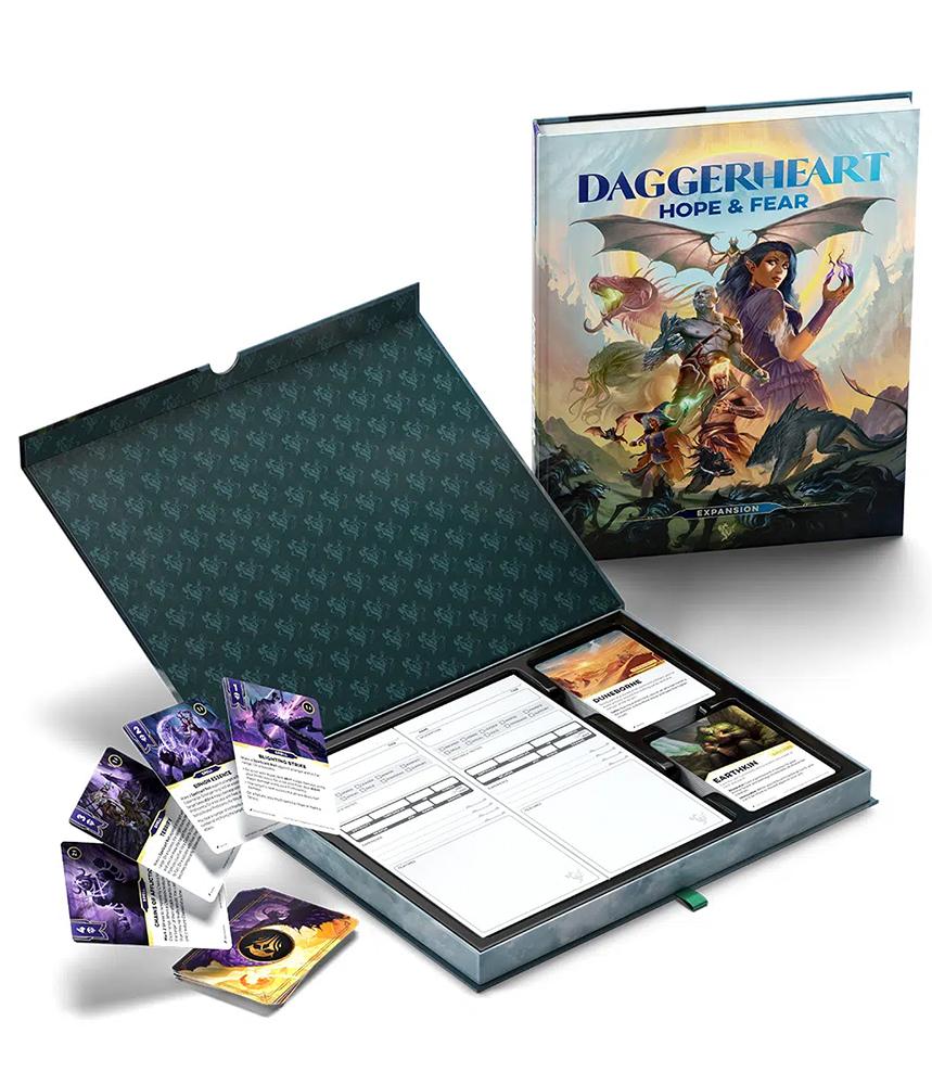 The Daggerheart: Hope & Fear standard edition comes with a book (around 200 pages) and a box containing cards and 2 rip pads of blank adversary sheets!