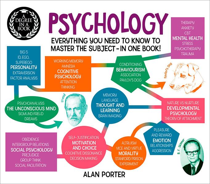 The perfect introduction to psychology, Degree in a Book: Psychology covers every major subject of psychology, every methodology. Including helpful diagrams, summary sections, ideas for further reading and questions to consider, you will soon be able tounderstand the differences between Freud and Jung, its relationship to neuroscience and physiology, and how psychology is used in our everyday lives.