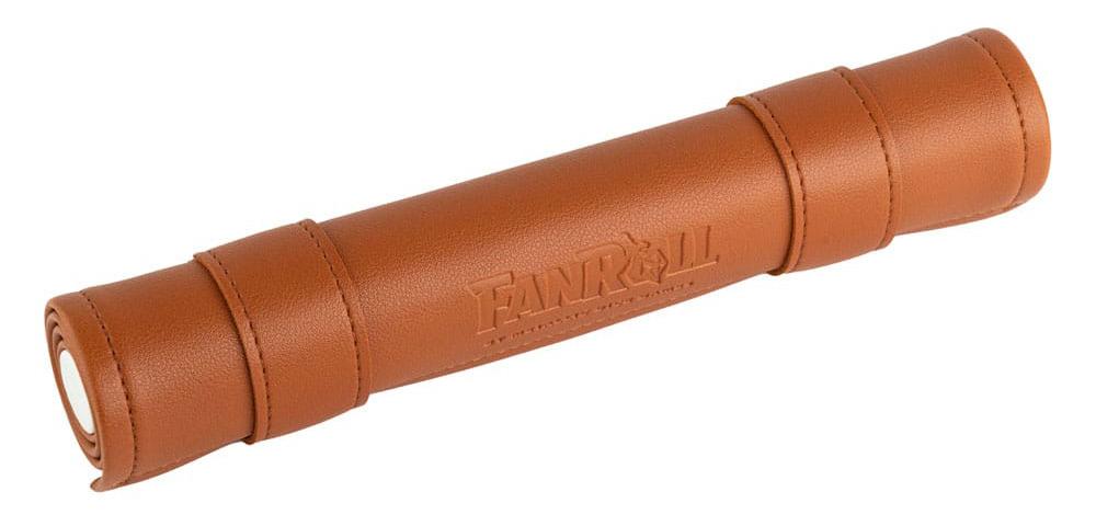 The scroll rolling map appears to be a rolled up leather scroll, but unwinds into a soft rolling mat for your dice. The secret zipper compartment holds all of your favorite dice.