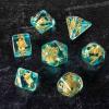 FanRoll resin dice have unique inclusions that add flare to any gaming table. These are full-sized 16mm polyhedral dice sets that come with 7 dice (d4, d6, d8, d10, d10%(00-90), d12, and d20).