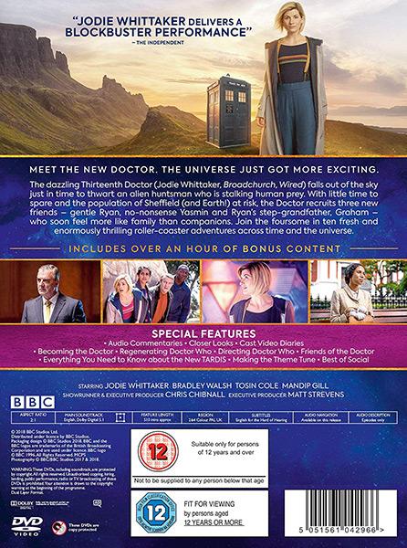 After regenerating, the Doctor falls to Earth, unable to remember her name, and teams up with new companions Graham (Bradley Walsh), Ryan (Tosin Cole) and Yasmin (Mandip Gill) to go in search of her missing TARDIS. Caught up in her travels through time and space, the gang find themselves visiting Montgomery, Alabama in 1955, battling giant spiders and witnessing the partition of India.