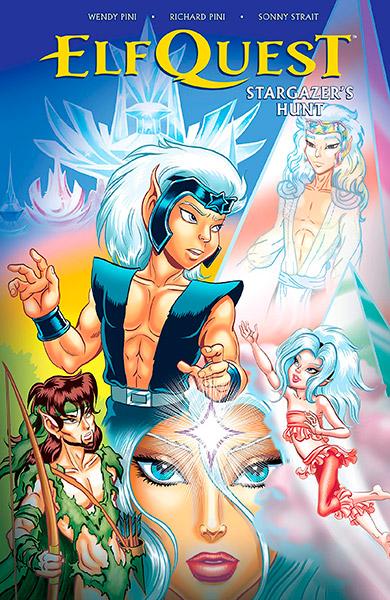 This volume collects issues #1-#4 of Stargazer's Hunt, with story by ElfQuest co-creators Wendy and Richard Pini, with script and layouts by Wendy Pini. Veteran ElfQuest alumnus Sonny Strait returns at full force as the artist and colorist for the new series.