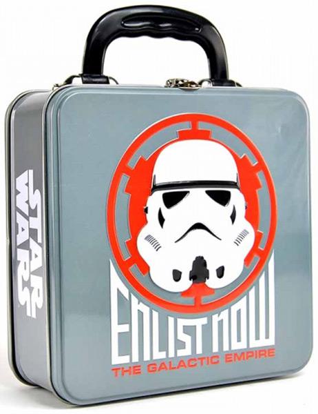 This embossed Star Wars tin tote is ideal as a keepsake tin, lunch box or display item. Featuring a Darth Vader badge icon design and the words 'Defend the Galactic Empire', it's a great addition to any Star Wars display.