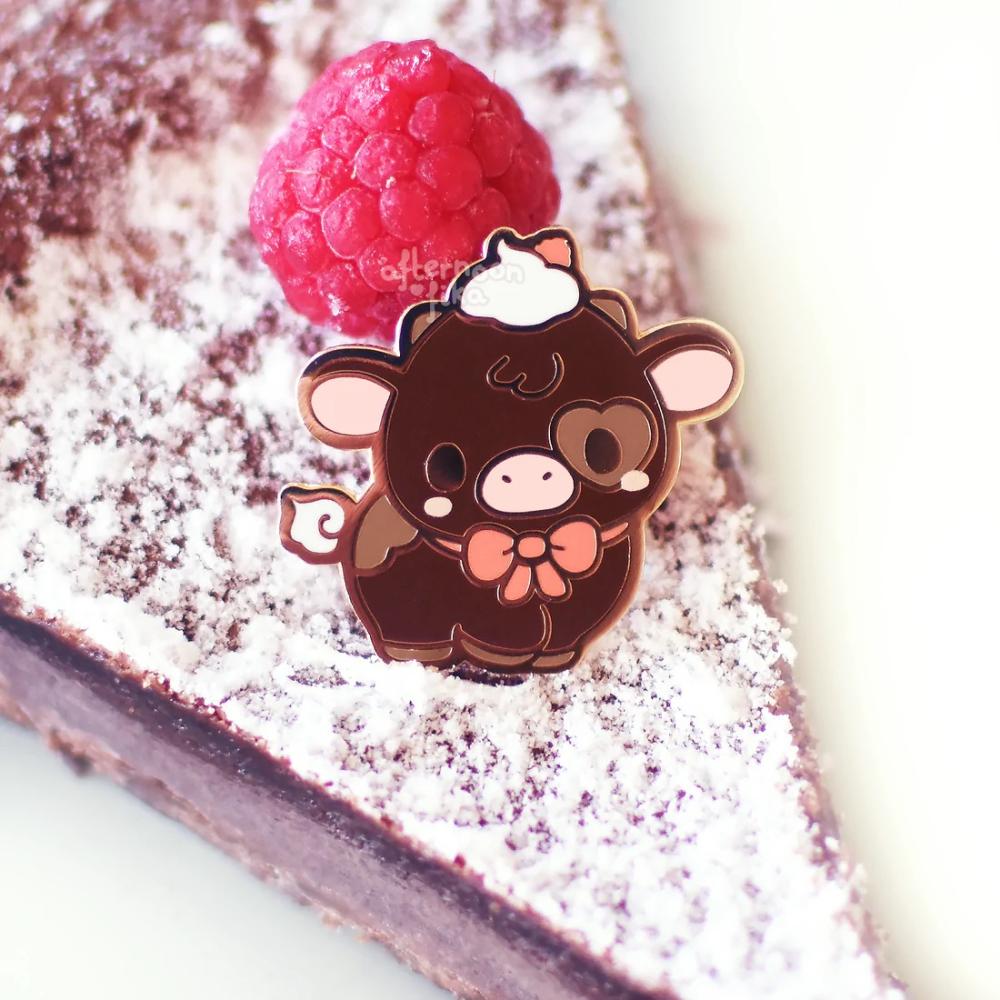 Our mudcake cow is one of them, for sure, as even her entire fur is the colour of mudcake! This 27 mm in hard enamel pin is perfect for mudcake fans and chocolate enjoyers alike, and features a rubber pin back to make sure she does not run away the moment more kladdkaka is brought out to eat! She can be safely fastened to backpacks and jackets, or kept at home in a pin board for the collectors out there. Get yours now for a taste of sweetness!