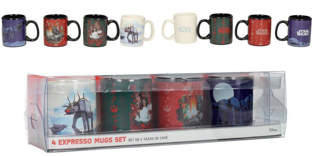 Fyra espressomuggar med julmotiv från Star Wars. Rymmer 1 dl och kommer i en presentförpackning.