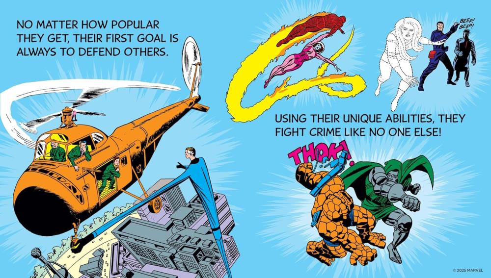 Suit up, flame on, and leap into action with the Fantastic Four, the world’s first Super Hero family! Learn all about Mister Fantastic, the Invisible Woman, the Thing, the Human Torch and their super-powers, backstories, and enemies in this bright and bold board book, with art from the king himself, Jack Kirby!