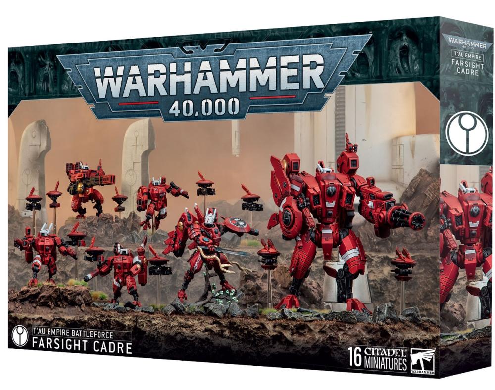 Considered relative newcomers on the galactic stage, the T’au Empire are nevertheless big players in the 41st Millennium, their technological prowess letting them fight against ancient civilizations and warp horrors alike. Commander Farsight is an exemplary warrior of the Mont’ka, but also a separatist rebel, and the Farsight Cadre puts him in control of a surgical strike force comprising powerful battlesuits.