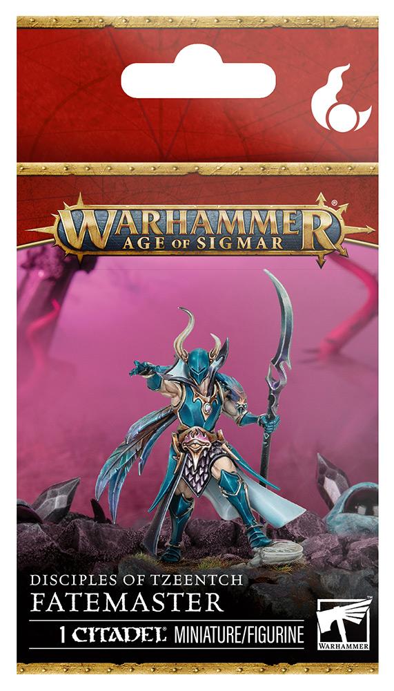 This multipart plastic kit builds a Fatemaster, a powerful wizard for your Disciples of Tzeentch armies in games of Warhammer Age of Sigmar. Armed with a wicked-looking cursewrought glaive and protected by heavy armour plate, they are ready to lead the charge of your Arcanite horde. Their robes, angular armour, and Twistwing companion also offer painters a range of textures to showcase their skills.