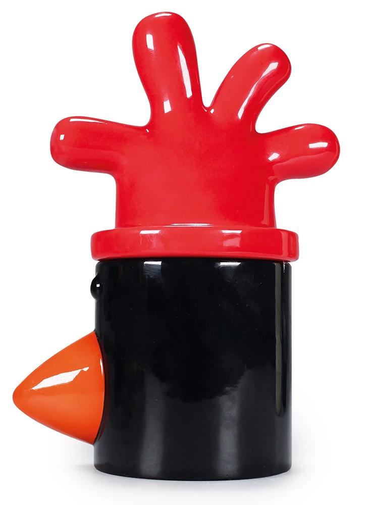 Mugg med lock i form av Feathers McGraw från Wallace & Gromit.