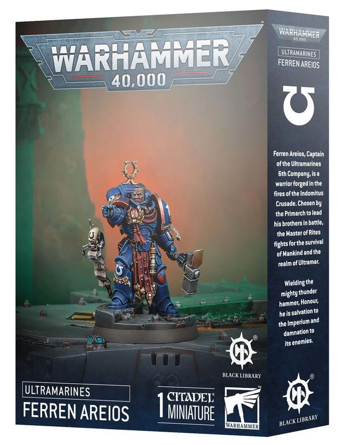 This multipart plastic kit builds Ferren Areios, a mighty hero for your Space Marines armies in games of Warhammer 40,000. Ferren was first seen in the Dawn of Fire series, and now stars in his own Black Library novel, Master of Rites. He comes to the tabletop clad in ornate Mk X Tacticus armour and wielding a thunder hammer known as Honour. He's both a powerhouse in game and a fantastic painting challenge. The miniature comes with a choice of two heads – bare and helmeted.