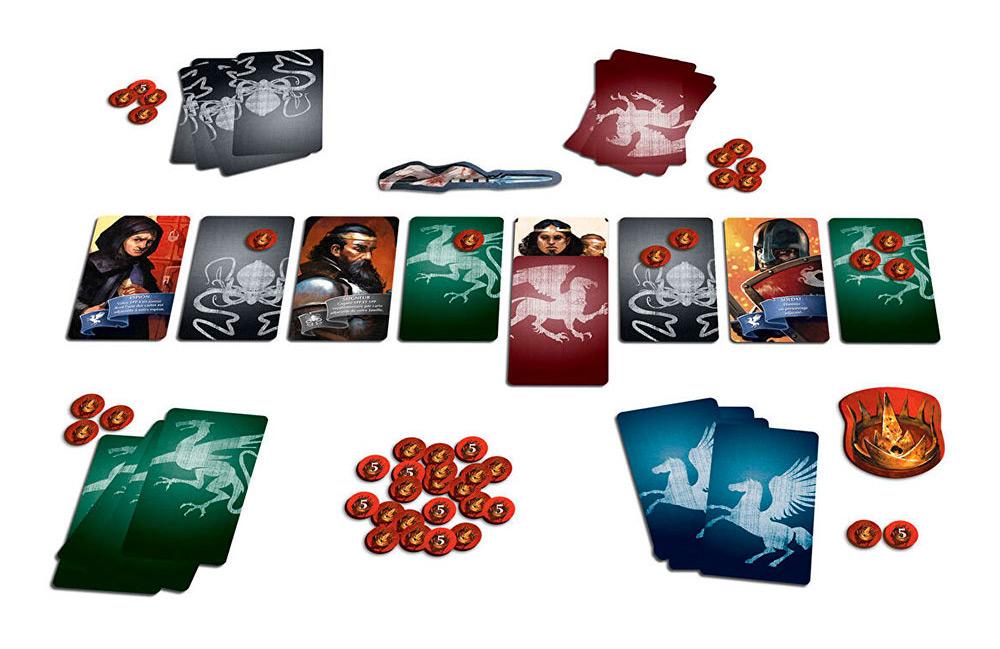 In this tactical card game, hidden cards are played in turn. By tactically uncovering and activating their effects, players can outdo or get them out of the way, because all players have the same goal in mind — to collect the most influence points for their family and thus win the game.