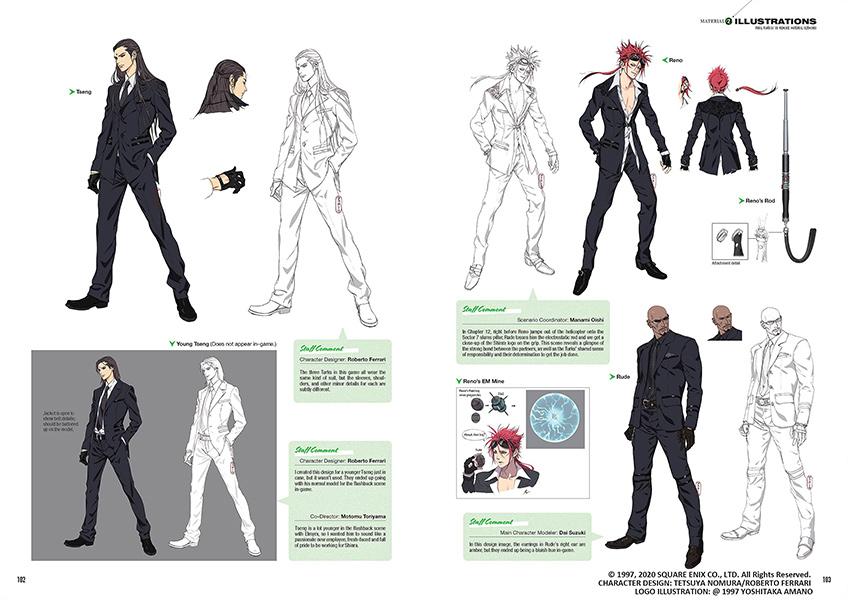 Final Fantasy VII Remake: Material Ultimania presents a comprehensive collection of production art and CG art assets, including character models and illustrations, locations and backgrounds, accessories, weapons, enemies, and more, all accompanied by staff commentary. This volume also includes detailed costume references, cutscene storyboards, song liner notes from the sound staff, and Q & A interviews with the Japanese voice actors.
