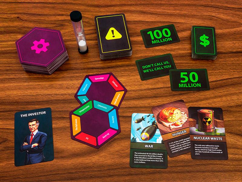 En spelare i varje omgång agerar investerare och satsar 100 och 50 miljoner dollar i den bästa och nästa bästa idén. Spelaren med mest pengar när spelet är slut vinner.
