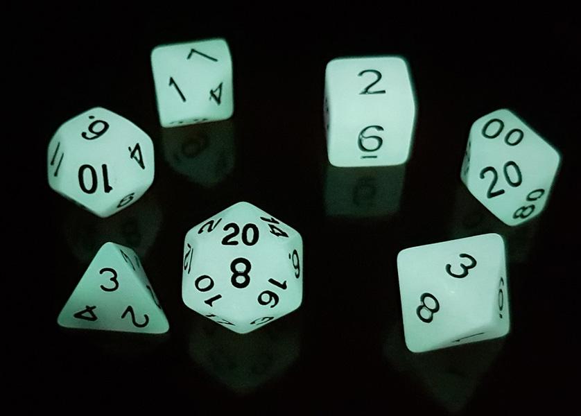 Tärningsset med 7 självlysande tärningar