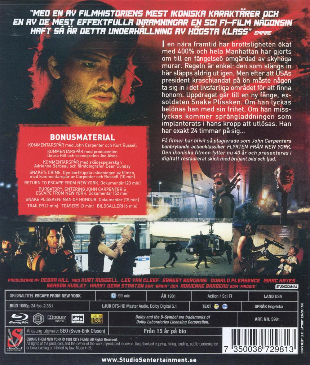 I en nära framtid har brottsligheten ökat med 400% och hela Manhattan har gjorts om till en fängelseö omgärdad av skyhöga murar. Regeln är enkel: den som stängs in här släpps aldrig ut igen. Men efter att USAs president kraschlandat på ön måste någon ta sig in i det livsfarliga området för att finna honom. Uppdraget går till en ny fånge, ex-soldaten Snake Plissken. Om han lyckas belönas han med sin frihet. Om han misslyckas kommer sprängladdningen som implanterats i hans kropp att utlösas. Han har exakt 24 timmar på sig...