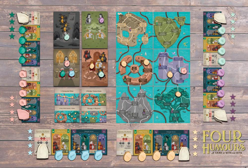 One choleric wins, Two+ Snaguine wins, Exactly two Melancholics win or one wins in retreat, and all remaining Phlegmatics win in that order. Once a condition has been met, the heirarchy stops resolving. The hierarchy incentivizes you to cleverly work together with your opponents, or backstab and bluff them to get ahead.