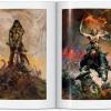 Frank Frazetta has reigned as the undisputed king of fantasy art for well over 50 years, the value of his paintings now climbing as high as his fans’ admiration. Each year his works break the previous year’s auction records, with the cover for Lancer books 1967 Conan bringing $13.5 million in September 2025.Born to a Sicilian immigrant family in Brooklyn, 1928, Frazetta was a minor league athlete, petty criminal and serial seducer with movie star looks and phenomenal talent. Self-described as lazy and difficult, he often started a painting the night before it was due, completing it in mere hours, yet delivering a masterpiece?often still wet, but a masterpiece, nonetheless. He started in comics at age 16, including the infamous EC Comics, moved on to film posters, then to Tarzan and Conan pulp covers. Along the way he produced magazine covers for National Lampoon, though at odds with the editors’ “hippy politics,” made the animated film Fire & Ice with director Ralph Bakshi, and learned to paint left-handed at age 68 after the first of many strokes paralyzed his right hand. As he explained in the 1970s, “I’m very physical minded. In Brooklyn, I knew Conan, I knew guys just like him.” Using this first-hand knowledge of muscle and macho he redefined fantasy heroes as more massive, more menacing, more testosterone-fueled than anything seen before, and their female counterparts as thick-thighed, heavy-buttocked, and pixie-faced, yet still, with their soft bellies and hints of cellulite, believably real. All in all, Frazetta’s art is addictive as potato chips, and now available in a compact, attractive and affordable package.