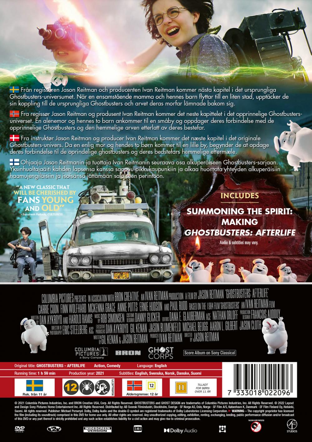 Från regissören Jason Reitman och producenten Ivan Reitman kommer nästa kapitel i det ursprungliga Ghostbusters-universumet. I Ghostbusters: Afterlife: När en ensamstående mamma och hennes två barn kommer till en småstad, börjar de upptäcka sin koppling till de ursprungliga spökjagarna och det hemliga arvet som deras morfar lämnade vidare. Filmen är skriven av Gil Kenan & Jason Reitman.