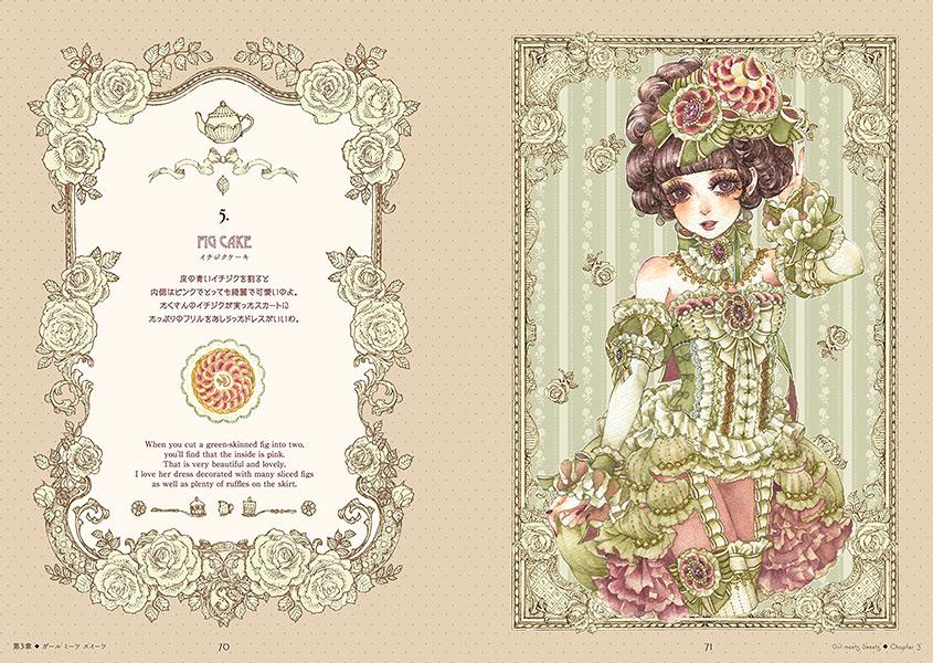 Konstbok med illustrationer av den populära japanska konstnären Sakizo (även känd som Sakizou). Denna gång är temat bakelser, sötsaker och matchande drycker, och i typisk Sakizo-anda så tolkas dessa om till vackra klänningar och dräkter. Text är både på engelska och japanska.