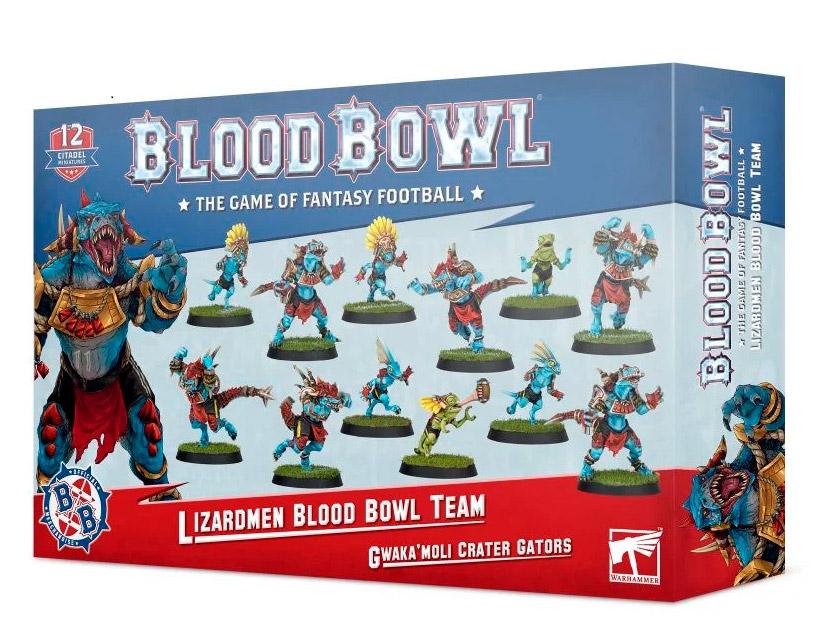 This multipart plastic kit contains all the components you need to assemble the Gwaka'moli Crater Gators, a Lizardmen team for use in games of Blood Bowl, containing 6 Saurus Blockers, 4 Skink Runners, and 2 Chameleon Skinks, plus a roster sheet. Also includes a transfer sheet, 2 Slann-statue turn markers, egg-themed balls, and 12x 32mm Citadel round bases which feature holes to place the ball.