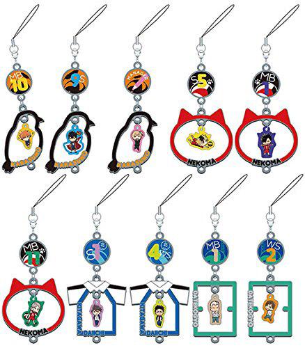 Mobilhängen av metall med figurer från Haikyuu!!. Man får en av följande: Hinata, Kageyama, Hitoka, Kenma, Kuroo, Lev, Oikawa, Iwaizumi, Aone, eller Futakuchi. Varje hänge är c:a 4,5cm. Eftersom de kommer slumpmässigt i slutna förpackningar kan vi inte garantera att man får en specifik figur.