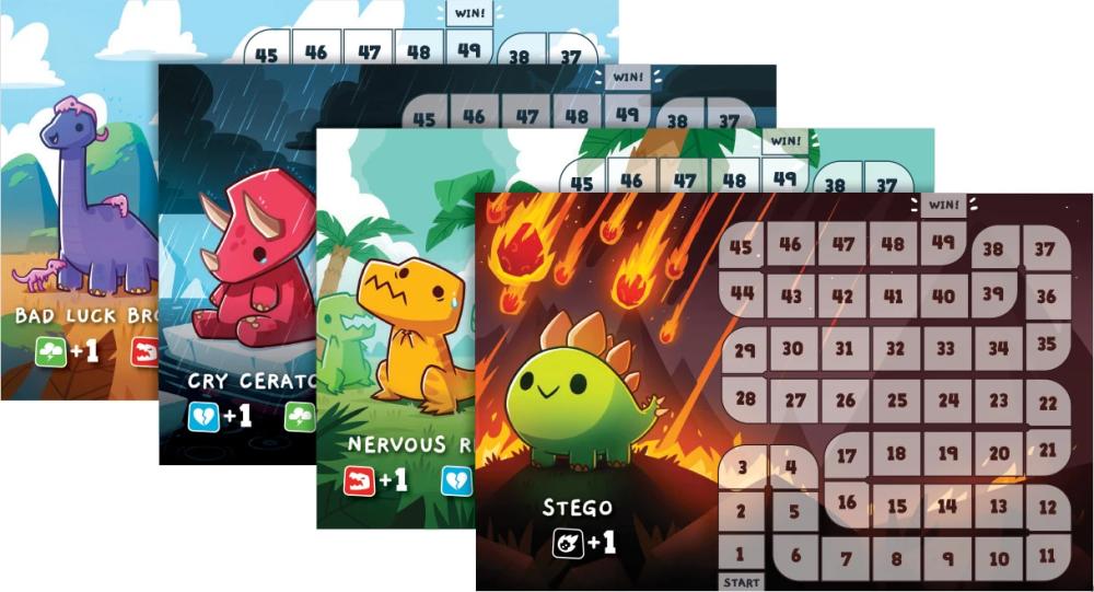 På senaste tiden känns det som att vi alla är dinosaurier som försöker undvika fallande meteorer. I detta spel för 2-4 spelare försöker ni undvika alla livets katastrofer, naturliga, emotionella och de som kommer i form av rovdjur. Du kanske faller ner i en grop med het lava, blir attackerad av sabeltandade ekorrar eller så dyker din dinodejt aldrig upp. Den dinosaurie som överlever längst vinner spelet!