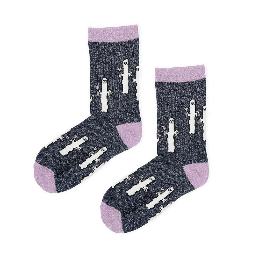 Material: 75% Bomull 23% Polyester 2% Elastan Storlek: EU 36-42 Färg: Glittrande svart och lila